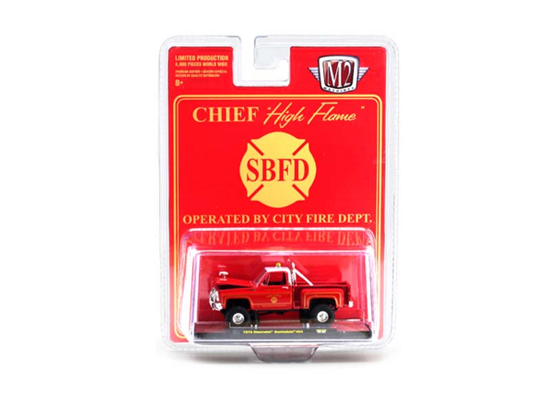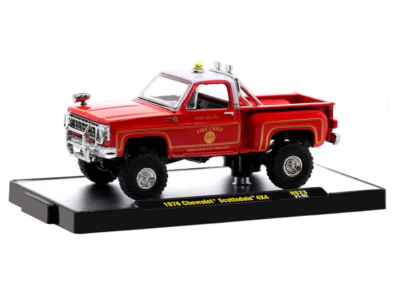 CHASE 1976 Chevrolet Scottdale 4x4 Fire Chief Diecast 1:64 Scale Model Car - M2 Machines 31500-HS23
