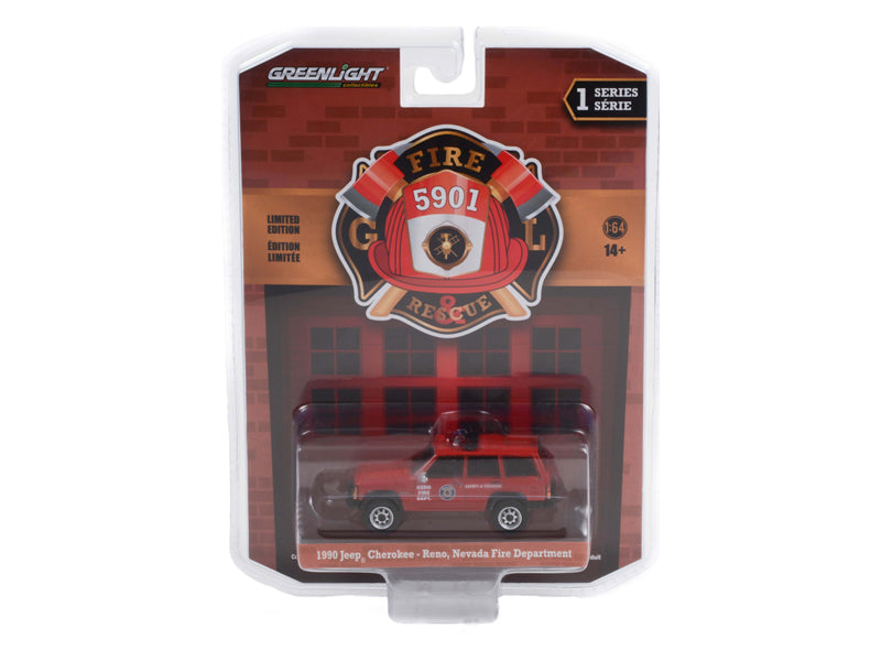 1990 Jeep Cherokee Reno, Nevada Fire Department "Fire & Rescue Series 1" Diecast 1:64 Scale Model Truck – Greenlight