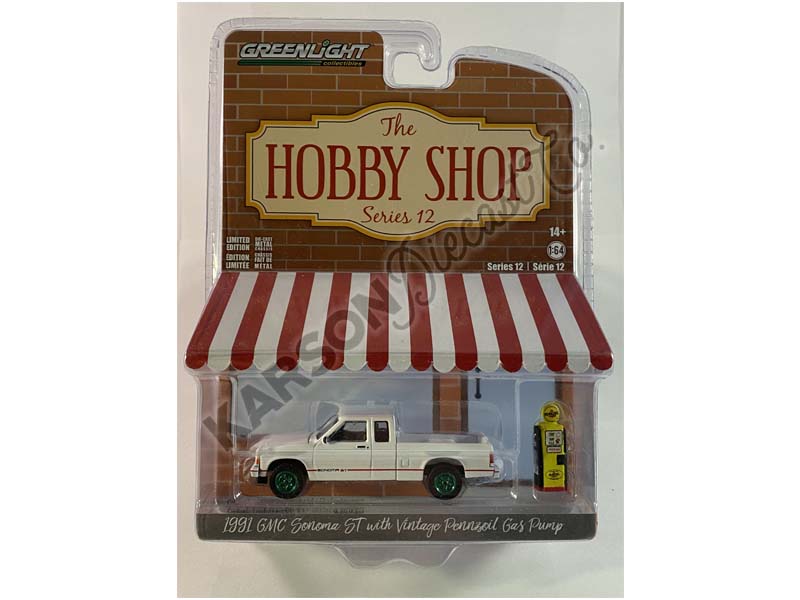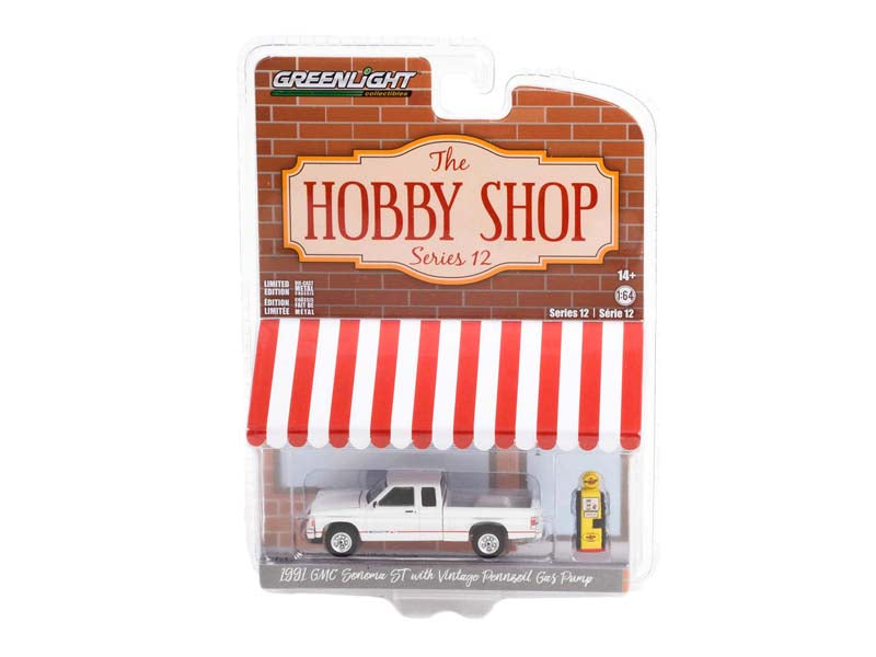 CHASE 1991 GMC Sonoma ST w/ Vintage Pennzoil Gas Pump (The Hobby Shop) Series 12 Diecast 1:64 Model Car - Greenlight 97120D
