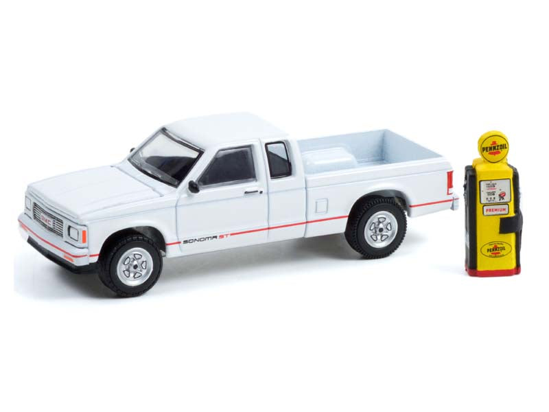 1991 GMC Sonoma ST w/ Vintage Pennzoil Gas Pump (The Hobby Shop) Series 12 Diecast 1:64 Model Car – Greenlight