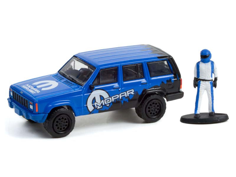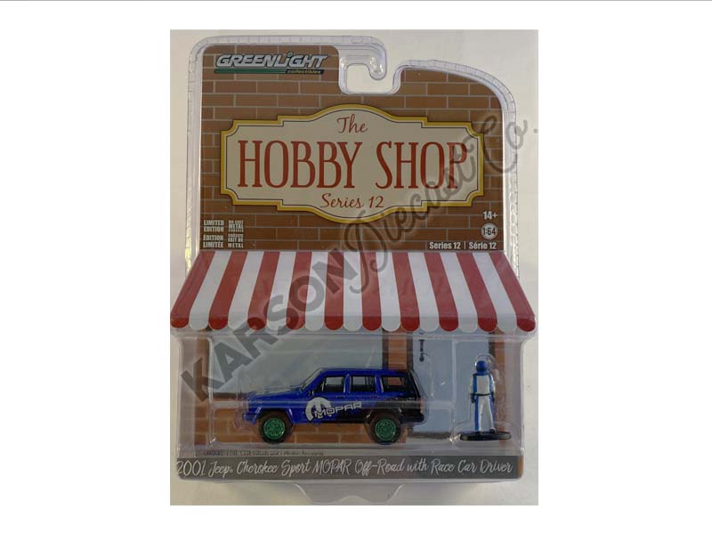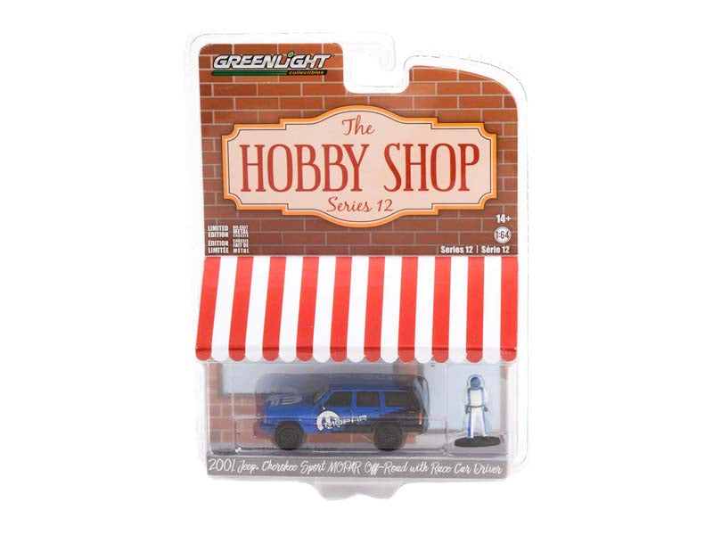 2001 Jeep Cherokee Sport - MOPAR Off-Road w/ Race Car Driver (The Hobby Shop) Series 12 Diecast 1:64 Model Car – Greenlight