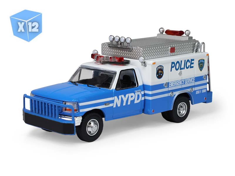 PRE-ORDER - 12 PACK 1995 Ford F-350 NYPD - Emergency Service (Hot Pursuit) Diecast 1:64 Scale Model - Greenlight 30583