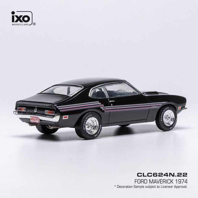 PRE-ORDER 1974 Ford Maverick - Black w/ Stripes Diecast 1:43 Scale Model - IXO CLC624N22